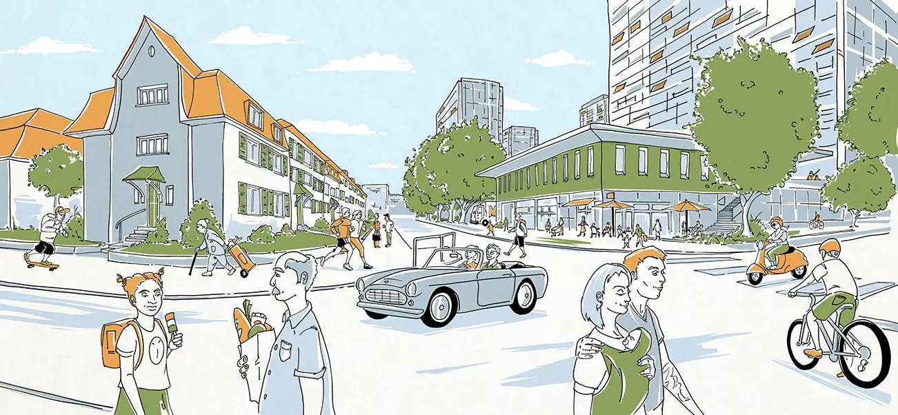 Die bestens vernetzte Lage des Lehenmatt Ensembles bietet eine optimale Anbindung an die Stadt und die umliegenden Gebiete.